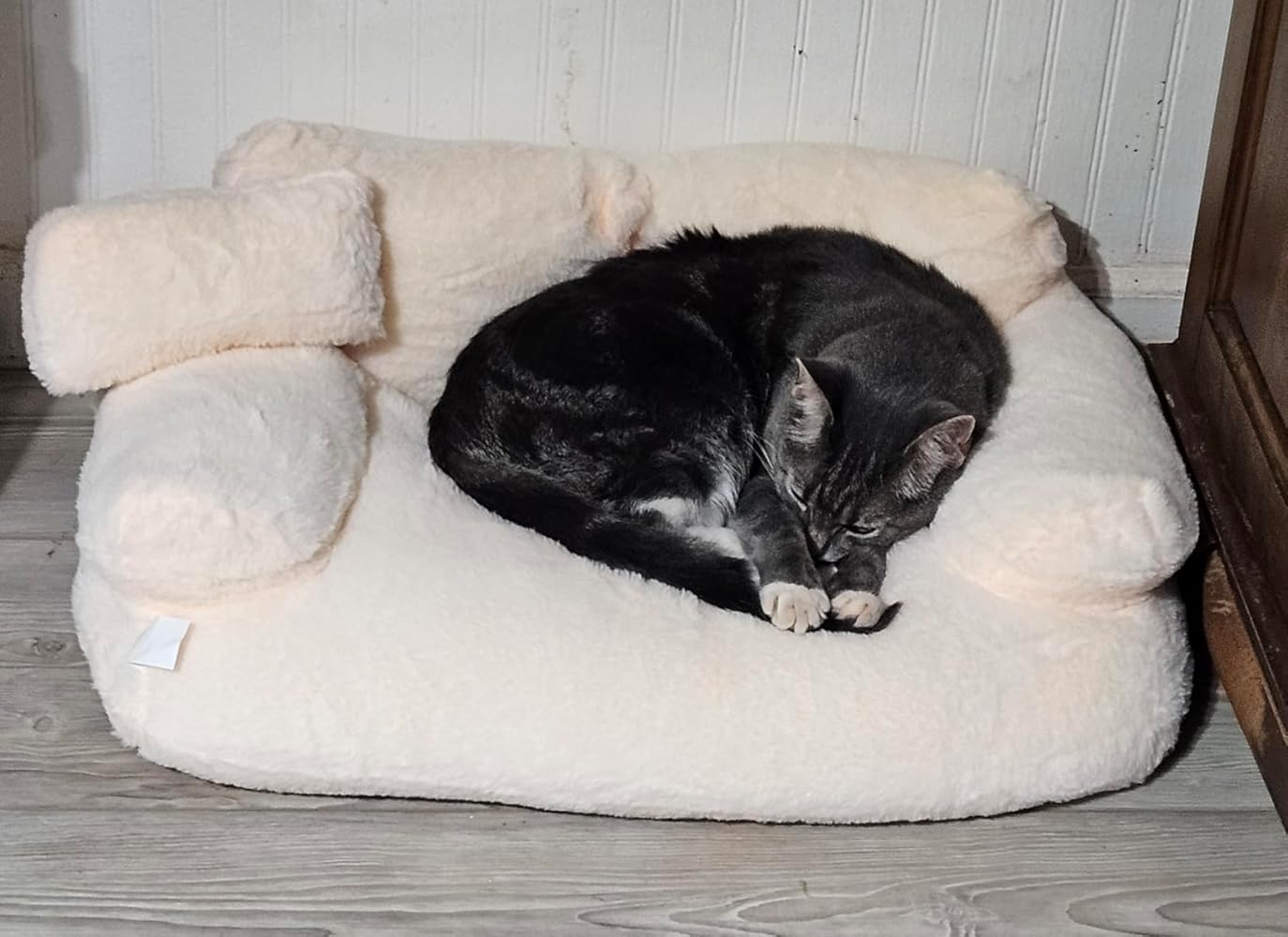 A soft, sofa-style pet bed made from ultra-soft flannel plush. Raised armrests and backrest create a secure, calming space for cats and small-to-medium dogs.Key Features Ultra-soft flannel plush fabric Raised sides for head and neck support Warm and calming — ideal for indoor pets Multiple sizes to fit all pets...